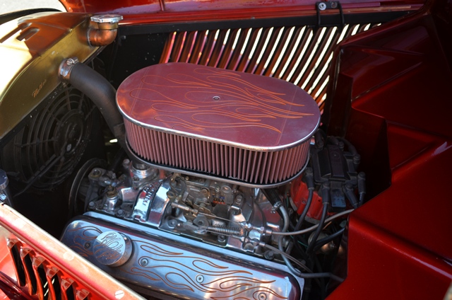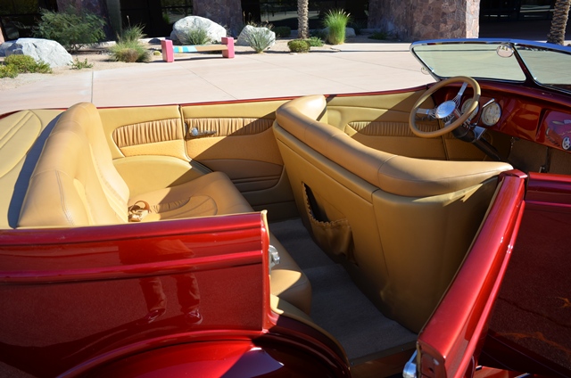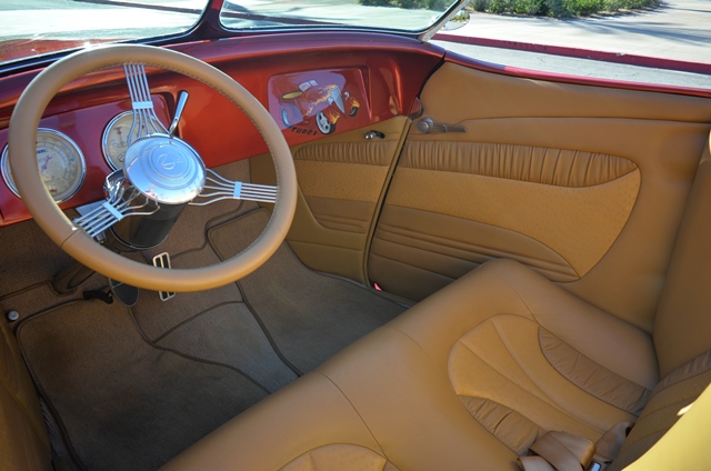 All steel car! Paint - candy red with gold undercoat Flames - Real Flames by OneXtreme.com - Alberto Ahumada Interior - Tan leather with ostrich inserts by Armandoscustom.com Transmission - 4 speed, 400 automatic Engi...