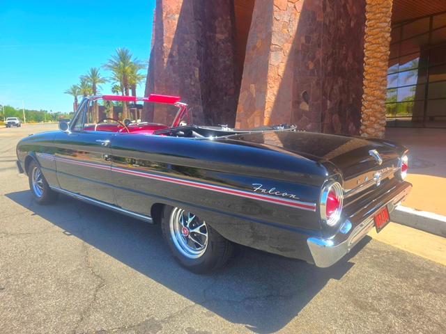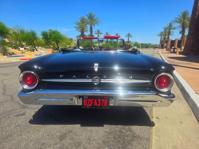 The 1963½ Ford Falcon Sprint convertible, 2-speed Ford-O-Matic transmission, bucket seats, and a center console. As a "mid-year" model, it boasted updated styling like a new grille and sportier trim. This compact convertible focused on merging sporty performance with automatic cruising, with roughly 4,602 convertibles produced.