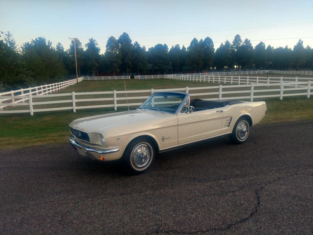 1966 Ford Mustang Convertible Solid California Car. Rebuilt 289 V-8 with Manual Transmission... Sold New at the Ford Dealer in Red Bluff CA. In 1966 And stayed in the Area, until 2018 in Redding CA., About 30 miles away... It Comes with the Original Owners Manual... It's been restored in " Sierra Beige " paint with a nice Saddle Bucket Seat interior and Palomino Appts... Wire Spoke Wheel covers and the New Palomino Power Top.... Gives it the Classic Pony look.... Plz. Note: This Mustang, has had long term ownership, and speaks for itself...