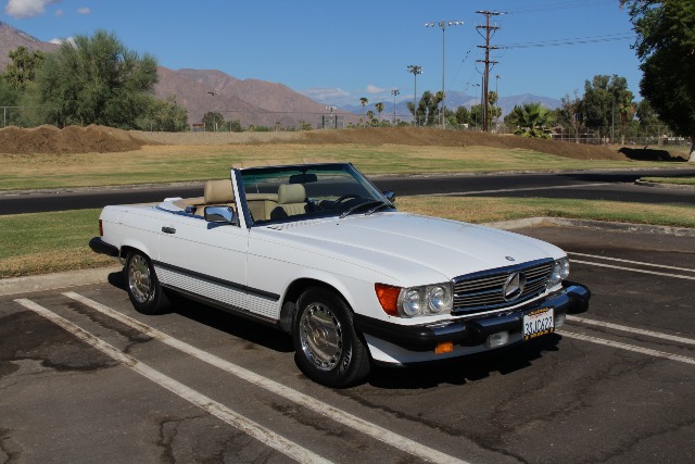 Beautifully maintained 1989 Mercedes Benz 560SL convertible powered by a 5.6 liter V8 engine with a 4 speed automatic transmission has covered just ninety seven thousand carefully driven miles, this works out to an average of just three thousand three hundred miles each year . Air conditioning, cruise control, power windows, bucket seats, custom AM/FM CD stereo, power steering and brakes, 4 wheel ABS disc brakes, rear window defroster, driver's side air bag, fog lamps, chrome alloy wheels, leather and more... Includes both hard and soft tops. The epitome of a classic Palm Springs car. This car is really sharp!