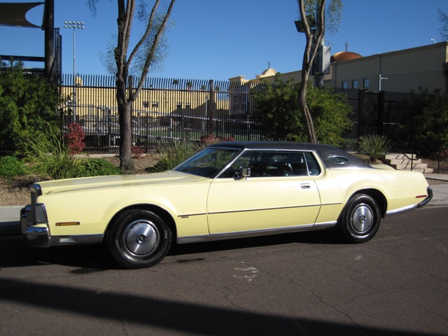 One owner Arizona original classic Mark IV with just over 118K miles. Original yellow paint and black soft cloth interior, Black vinyl top. All original. Service records indicate over $5,000 of work completed recently to include: new shocks, air conditioner, belts, hoses, water pump to name a few. New radial tires with almost now wear. In 1973, MSRP of $6700. According to Nada classic car guides these original cars are bringing over $29,000!! Comes with service receipts and registration records and bill of sale. Recent service to window regulator, seat switch and brakes. Comes with car cover, original spare and jacks.