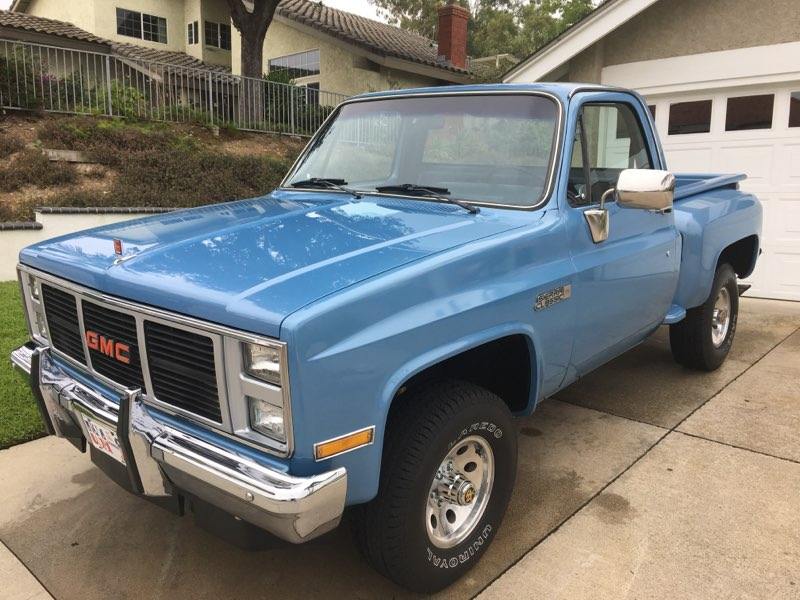 This is a one owner family owned 1986 GMC SIERRA CLASSIC CK 1500 4X4 STEPSIDE SHORT BED. 98K ORIGINAL MILES, 5.7 LITER 350 V8, AUTOMATIC OVERDRIVE, power windows, locks, tilt, cruise, factory amfm cassette, full guage package, dual factory gas tanks, all original like new cloth top of the line interior, ice cold AC. Everything works as it should, one older GM warranty repaint excellent condition, very reliable ready for work or play popular square body short bed 4x4. This truck comes with all original books, manuals, original report of sale, every registration since new and its wearing its original blue and gold license plates.