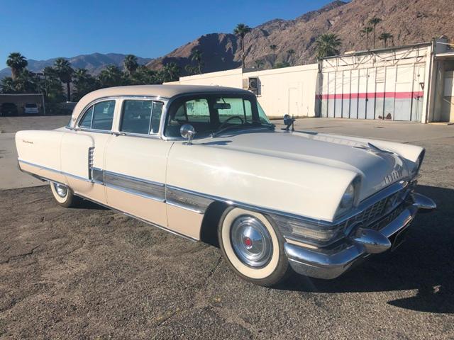 This very original and loved 1955 Packard Patrician has just had a smart refresh of paint and chrome stripes and jewelry and shows proudly in its original trim code colors of White Jade and Agate and a Topaz Interior thats incredibly fresh and still has sparkling lurex threads in a cabin designed by Dorothy Draper. Additionally, the Packard has the deluxe rear air conditioning unit which makes it even more rare and desirable. Decades of documentation, and all original keys and manuals accompany the car which also comes with a trove of spare parts that were stored as back up from its long term (48 years) prior owner. The car drives and shows with great confidence and has had the heavy lifting of carb , added electric fuel pump, new brakes and shocks to support the torsion level ride system and some other deferred maintenance have been performed. Drive as is or take to the next level as this is a great candidate for a true classic restoration. It features, AC, Power Antenna, Power Seat, Power Windows, Radio, Dual Heaters, Easamatic Power Brakes, Ultramatic Dual Range Automatic Transmission, Dual Mirrors and working exterior courtesy lights. So many gorgeous details throughout. Currently the fuel sender has been replaced but the fuel gauge on dash needs to be swapped and an NOS gauge is included in the sale along with all of the spare parts and historical documents.