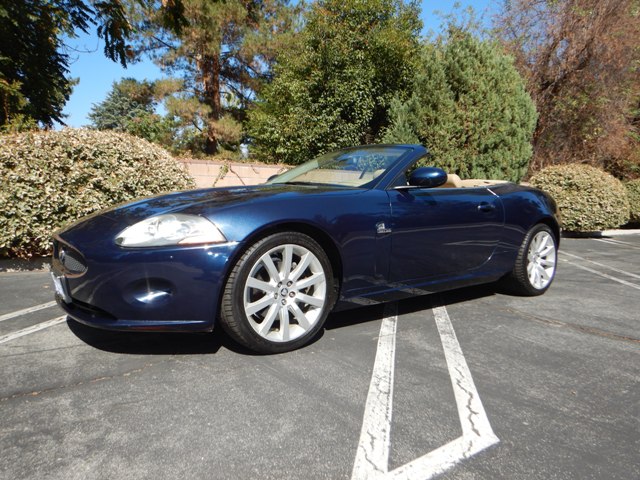 2008 Jaguar XK 2dr Convertible, Dark blue metallic exterior, Blue power convertible top, light tan full leather interior w Burlwood accents, Power seats, w lumbar and heat, Steering wheel full leather w heat, touch screen navigation and upgraded factory sound system. This jaguar runs excellent, everything working correct Always dealer serviced w all service records since new, car fax certified.