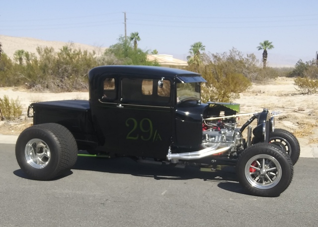 Custom built 5 window, all steel, 1929 Ford Model A Pickup. It has a NASCAR style Chevy 358 engine with dual EFI carbs, headers with electric cutouts, 700r overdrive trans, Chevy Posi rear end , front Wilwood disc brakes, custom interior with vintage gauges and roll bar. Nostalgic Racing Mag rims with Hoosier street race radials set off this show quality one of a kind Street Rod.
