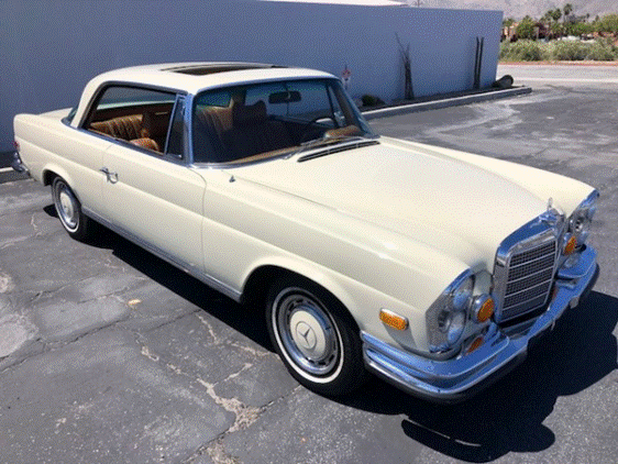 This stunning coupe is not only among the last of the line , but also the most desirable 111 coupe made . This particular vehicle was built within the last few months of production and has the 3.5 or 3,499 cc V8 , 200 horsepower engine along with the desirable floor shifter option and features the 'Flachkuhler' low wide grille . Finished in 670H light ivory paint this vehicle also has the Behr air conditioning and the original Becker Corona radio . The leather trimmed interior is unmarked and the wood trims appear to be in very nice condition, also the power sunroof operates smoothly and quietly . This is a Southern California car and is free of any corrosion along with a laser straight body with unmarked paintwork. Being available for a short period of just eight months makes these coupes among the most desirable of the Mercedes Benz vehicles . Call today to arrange your viewing of this appreciating classic .