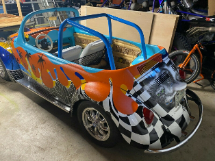 1970 Highly Modified Bug, minted by select few of the the Pacific Northwest's premier auto artists. It is accompanied by a framed print of the original artwork that inspired the graphic design for this exemplary blueprint of modern auto art work. It masterfully delivers intrigue and driving thrills simultaneously, enough to last a lifetime. It truly drives as a go-kart with super tight-ratio steering and plenty power upon acceleration when the "Pedal's Put Down"! Some of the additional features are; GTO "The Judge" type gauge cluster Highly polished "Super-light" race wheels Dual- Port VW Engine Stainless Steel Running Boards Surfboard "TIKI" inspired interior Just to name a few. Runs and drives excellent and is prepared to give 10,000s, of what can only be described as "exhilarating miles".