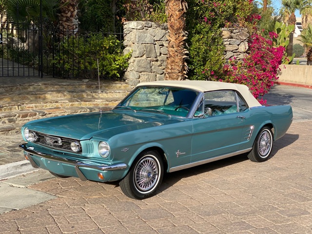 This restored 1966 Ford Mustang A-CODE 289 V8 with PONY 2-tone GT interior, C4 Automatic transmission with matching factory Tahoe Turquoise color is a dream car that looks outstanding and drives flawlessly!! - Power steering - Power convertible top - Rebuild factory 289 cu V8 4.7L engine with four-barrel carburetor - New steering box (Car drives straight and doesn't swim on the road) - New PONY GT interior - New carpet with floor mats in matching turquoise color with Mustang Logo - Dual flowmaster exhaust system - Very solid & straight body with no rust on factory Tahoe Turquoise paint - Body has been preserved with a rust inhibitor to prevent corrosion - Original working radio - Original spare tire with original jack stand and wrench - Original manual & books with receipts and history - Service incl. oil & filter change has been done just recently