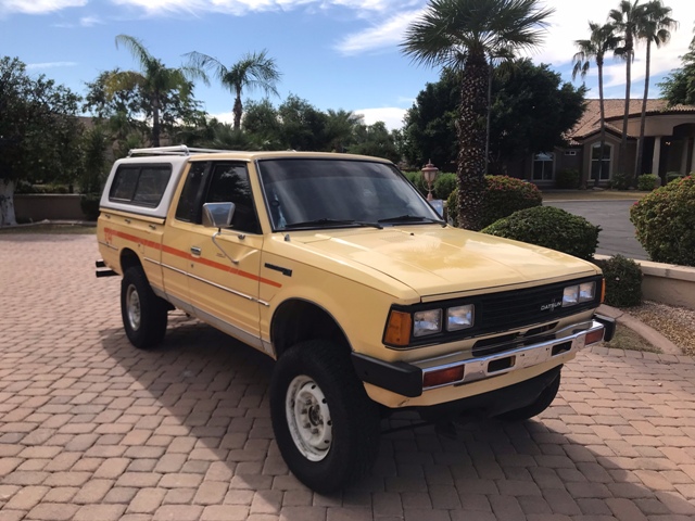 Hard to find, unmolested original Datsun 4X4. Original paint, vintage camper shell, rare 4X4 King Cab with factory jump seats, factory a/c. Has new carpet, upholstery.