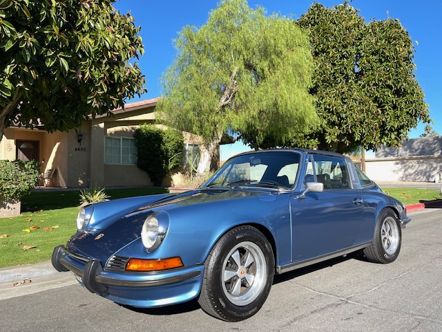 1973 Porsche 911T Targa in Gemini Blue with Black interior. 49,800 on odometer. MFI injection engine #6130213. Very good straight and solid body with better than driver quality paint. Nice Interior. Mechanically excellent and appears to be all stock. Runs and drives nicely with no smoke, good power, steering is good. This is a great, affordable, last incarnation of the long hood 911 in a fantastic color that really accentuates its beauty.