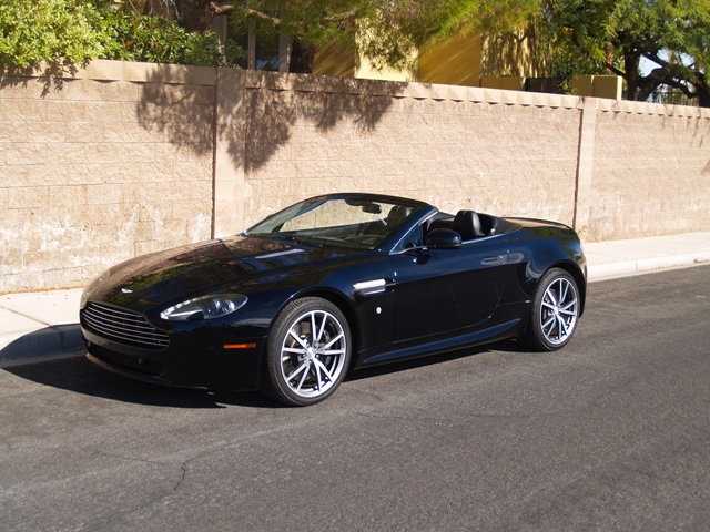 Beautiful triple black Aston Martin V8 roadster with just over 32,300 original miles. recent service includes : new tires, oil change, brake & coolant flush.. clean Carfax.. The 2010 Aston Martin V8 Vantage is powered by a 4.7-liter V8 that produces 420 hp and 346 pound-feet of torque. A six-speed manual transmission is standard and a six-speed automatic with paddle shifters is optional. Aston Martin estimates the coupe will accelerate from zero to 60 mph in 4.9 seconds Options include 19-inch wheels, cruise control, heated seats, memory functions, passenger seat-height adjustment, an auto-dimming rearview mirror, Bluetooth, a navigation system, satellite radio and a Bang & Olufsen audio system.