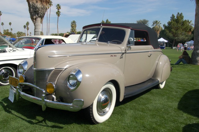 1940 Ford Deluxe Convertible - Same owner for the last 40 years! The 1940 Ford is one of the signature designs of the pre-war era featuring harmonious styling that made it both memorable and collectible. The sporty look also made the ’40 Ford irresistible to generations of customizers. However this car is totally stock and was restored about 40 years ago.The only non-stock item is an electric radiator fan and electric fuel pump which allows the car to be driven in parades at slower speeds. The car is painted in it's original Ford Color Folkstone Grey. The powered top and upholstery were recently redone by LeBaron Bonney. The car has 21,000 miles which are thought to be original and powered by the legendary 85HP flathead V8. Also has YOM California license plates.