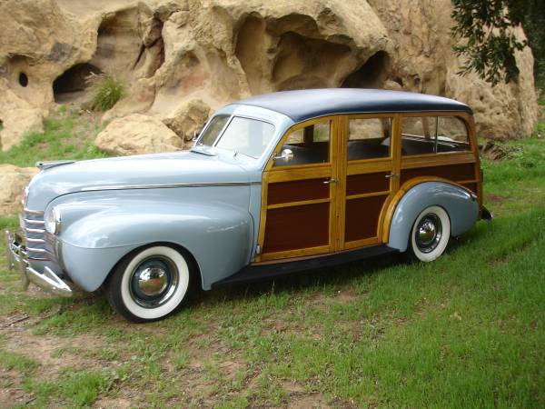 1940 Olds Woody Wagon, COMPLETE FRAME OFF RESTOMOD. New Chevy Vortec 350 V-8 engine with mild build. 350 turbo automatic transmission with column shift, 8” Ford rear end with 3.00 ratio 4 link. 2-way adjustable coil overs all around, Mustang II front end with power disc brakes, Vintage air and heat, AC blows ice cold. Modern stereo installed in glove box (Awesome sound system) New Goodyear radial white walls. 3 stage PPG blue/gray paint that has a brilliant shine. Chrome and stainless have been perfectly redone. Interior completely redone in original style that came from the factory. GM tilt steering column, all lights and horn work. Has turn signals and seat belts, gauges are all rebuilt and working. Has rare 3rd seat. This Woody was stripped entirely down and blasted; very little bodywork was needed as this car was in fantastic condition originally. Wood is 90% the original, disassembled, stripped and re-glued, coated with 5 coats varnish. This was a one family owned since new till bought 6 years ago. Runs and drives smooth and fast with ZERO ISSUES, runs super cool even on hottest days with AC going. The restoration on this car was completed in 2018. Car has won numerous awards and Woody shows. EVERYTHING on this Woody is new, driven 900 miles since completion in 2018. This Woody was featured in Woodie Times magazine in 2018 (6-page article) copies included with the sale. Super rare Woody, Best of the Best!