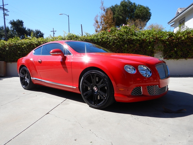 2012 Bentley Continental GT 2dr Coupe 36600 Miles RED Coupe, car fax certified w no issues, Excellent exterior, paint has no blems and has been hand washed and garage stored, factory 21 Inch wheels powdered coated black , Light cashmere leather interior, Black carpets and upper dash, extended wood veneers, leather and wood steering wheel, Full optioned power seating w heat, Air, and massage for both driver and passenger, there is no dash shrinkage, nor headliner sagging This is the 12 cyl, Parking sensors, back up camera, Bluetooth, A very nice looking and driving example