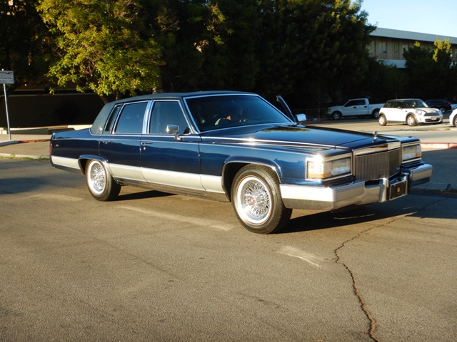 1992 Cadillac Brougham, an excellent car in every aspect w only 38,000 Miles on it, finished in excellent dark blue metallic there is not a ding, dent or scratch to the exterior, the padded top is also in as new condition as well as all trim and brightwork throughout the car, the car a has a Power moonroof, it sits on real wire wheels and new Voque tires. Interior is dark blue leather unmarked, no blems, , all wood veneers are excellent as well as all interior trim, headliner, and carpets, no warning lights, all windows, seats, radio, horn all work, even front and rear turn signal indicators that are on the front fenders and rear window work. Power antennae, factory radio. Complete service always performed, and garage stored, Cadillac enthusiast owner.