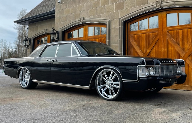 1969 Lincoln Continental Suicide Door Custom. Nick Named" Back N Black" is this Beautifully restored 1969 Lincoln Continental, the last year of the suicide door doors. Beautifully Restored and finished in stunning custom mix base- coat clear coat “Continental Black” exterior paint to show quality standards. Factory AC Lincoln continental rare option that blows cold. Loaded with every available option including power steering, power front disc brakes, 6 way power windows including side quarter windows. Power antenna, and power seats. The continental has been professionally lowered to perfection and has all new custom wheels for the perfect stance. Full tinted windows. The Factory big block 460 4 BBL V8. This car cruises beautifully Started life as a low original mile continental before it was comprehensively restored. Comes with Factory Build Sheet. Stunning Back In Black Continental Suicide Door Custom