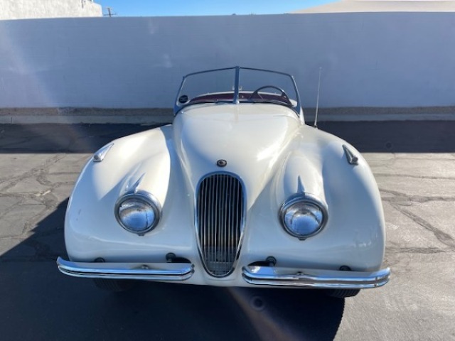This example of Jaguars first production true 120 mile per hour car is in beautiful condition. According to the heritage certificate this vehicle was dispatched to Hornburg of Los Angeles in March of 1952. The vehicle has been subject to an older restoration and still shows in excellent condition. It is a matching number car and is free of any corrosion. The red interior has a delicate patina and is perfectly suited to the vehicle.