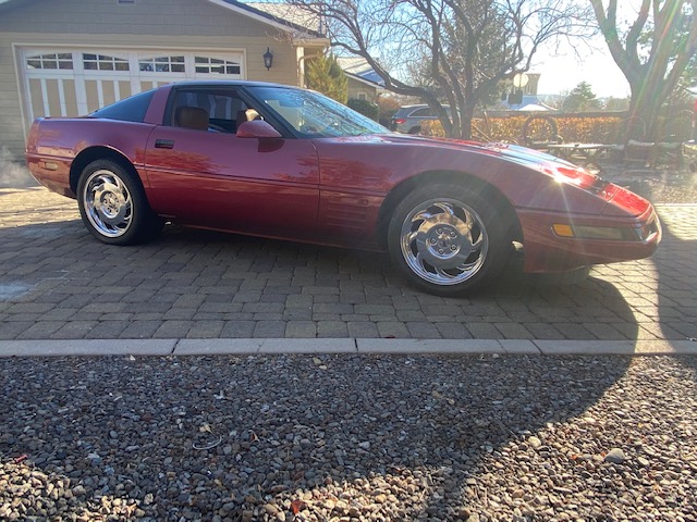 This Corvette Coupe is equipped with a fuel injected 5.7L V8, Automatic transmission, Upgraded sound system & CD changer power tan leather seats, powder coated alloy wheels, rear defogger, power windows, locks, mirrors, air, tilt and cruise. This has been long term adult owned. Always garaged includes original owners manual. This corvette is loaded.. hide away head lights, disc brakes, power steering & AC. Beautiful Burgundy paint set off by the chrome powder coated alloy wheels. The interior has beautiful tan leather. Spent more time in the garage than the road only 113,500 miles driven less than 500 miles a month for 19 years.
