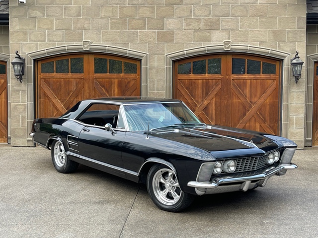 1964 Buick Riviera two door hardtop. Rare And Highly Desirable Factory 425- 465 Wildcat V8. Beautifully Finished In Tuxedo Black Exterior Paint. Rare Options include power steering and 4 way power window. Only 57,064 original miles. Beautifully appointed interior with refurbished wood accents and buckets and console. Rides on Custom 17 Inch wheels with new Z rated performance tires.