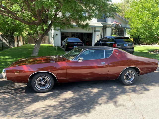 1971 Dodge Charger SE, 383 V8, automatic transmission, bucket seats (original leather), console, fresh paint, headliner, carpet, brakes, dual exhaust and cooling system. New vinyl top and rear bumper, new Cooper Cobra tires and includes complete vehicle history with receipts and hand written maintenance book.