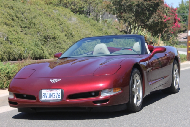 This 2003 Corvette 50th Anniversary special Edition is Spectacular! 2 California Owners, 35,000 original miles, 6 Speed, Head Up Display, 350 HP LS V-8, Fresh tires, detail and service! Beautiful Original paint and interior. Dramatic and rare - only 7,547 50th Anniversary convertibles were built. This car is LOADED with equipment, the 50th Anniversary package got the special maroon color, the shale interior, key memory settings, power telescoping steering wheel, leather seats, twilight sentinel, head up display, and magnetic selective ride control. The wheels are 50th anniversary aluminum wheels, in the factory "Champagne" color. Immaculate original leather interior with 50th anniversary emblems on the seats, carpet mats, The 5.7 Liter Aluminum LS-1 V-8 is rated at 350 horsepower. This car is very fast. And look how clean that engine bay is ! almost like being at the Chevy dealer in 2003! The big black square in the dashboard is the Head Up Display, which projects a green screen so you can see your speed, and a few other metrics glowing on the windshield! It's the coolest thing, I really like this feature - it's like you're flying a fighter plane! Super clean undercarriage ! It had a significant service in 2021, including oil change, service, and new tires. It's enjoyable on many levels - looks, power, comfort - plenty of room for a tall person - and all kinds of fun options and gadgets. Owners Manual and other books, both original keys, and a fresh smog certificate. It's a great, totally original car that has had excellent care, and is ready for your enjoyment right now!