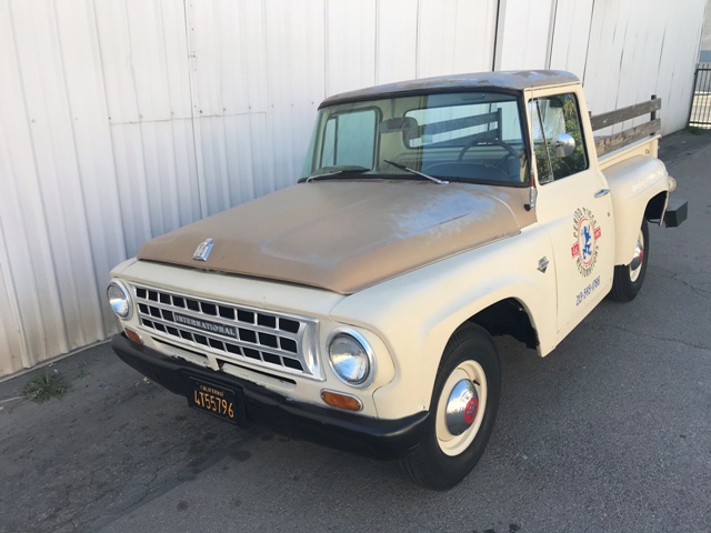 *** NO RESERVE *** 1963 International Truck. Short bed Four-cylinder, manual transmission. Light tan exterior with dark tan/brown interior. Radio with speakers Classic Black and gold license plate