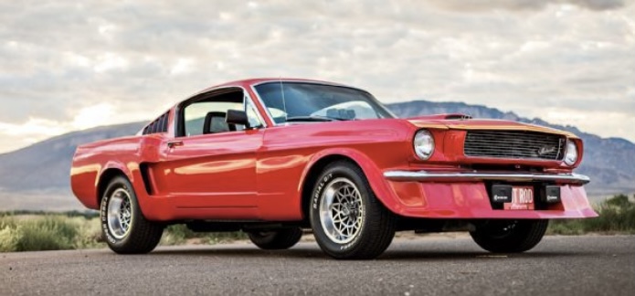 This custom 1965 Ford Mustang fastback known as "Mustang Magic" was originally built by Eddie Paul in the late '70s. In 2007 it once again made its way back to Paul for a much-needed multi-year refresh. Painted bright red and equipped with a custom interior, this custom consists of all-metal fabrication except for the Shelby-style fiberglass hood. During the build, Paul widened the body by 12-inches, fabricated the front flares using original Mustang fenders and widened them with an air chisel. He also blended the front flares into a Trans Am-style front air dam, hand-forming it from 22- gauge sheet metal and widened the rear by welding new Mustang quarters on top of the old ones, then shaped it with a hammer and dolly. The car has a total of 11 Can-Am-style scoop openings. Power to motivate this custom comes from a 289ci V8 engine backed by an automatic transmission. Built at the Edelbrock factory in California, the engine comes equipped with a Carter Super Quad 625 cfm carburetor and a Crane Blazer 228-2H camshaft with 276hp at 6,000 RPM with 242 ft/lbs of torque. The stock 2.80 gears were replaced with Perfection American Zoom 4.11 gears for the drag strip. The interior features Deist safety belts, a Vilem B. Haan 14-inch leather-covered steering wheel, AutoMeter gauges and reclining RECARO LS seats with re- created hand-woven jet-style fabric. As a bonus, Paul also signed the car between the gas filler and right taillight before applying a clear coat during his final restoration.