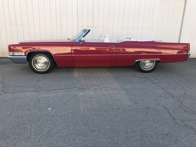 1969 Cadillac DeVille convertible. Beautifully done in Red with White Interior. Owed by the family for over 38 years. Always a California car. Power windows and door locks, Power convertible top, Classic Black and Gold license plate. Recently rebuilt carburetor.