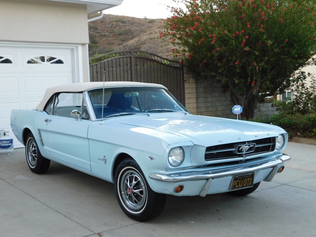 1965 MUSTANG CONVERTIBLE 289 V/8 MOTOR 3 SPEED MANUAL TRANSMISSION NEW INTERIOR NEW CONVERTIBLE TOP NEW SHOCKS AND STEEL RADIAL TIRES SANTA BARBARA CRUISER, LOOKS AND RUNS GOOD BLACK PLATE CALIFORNIA CAR.