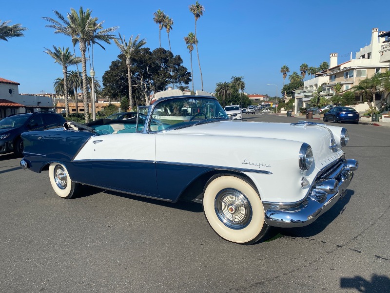 The paint is stunning as well as the interior. Showing only 585 miles. Motor runs like butter and appears to be rebuilt recently. All power. Power top. Top of the line 324 C.I. Rocket V8 mated with a 4 speed Smooth Shifting Automatic transmission. The Cadet Blue with Polar white is an amazing color combination. The interior features a standout 4 color presentation with 3 shades of blue and white with color coordinating door panels. Equipped with power brakes, power steering, power windows, power convertible top, Power seat, Autotronic eye, full gauges, Wonderbar radio, clock. just safety serviced the car. New wheel brake cylinders, rebuilt master cylinder, Multi point safety check. New battery, gas is new, rebuilt 4 bbl Rochester carburetor. Such a fun car for town or country or the beach. This car shows only 583 miles. just completed a multi-point safety inspection. Runs and drives great. NADA Blue Book Shows Value at approx. $150,000. 324 Rocket V8 Motor4 Speed Hydra Matic TransmissionRebuilt 4 BBL carbNew InteriorLike New PaintOriginal Wheel CoversPower SteeringPower Convertible Vinyl TopPower SeatsPower BrakesRear Spare TireWide white wall tiresFactory RadioFactory Clock Dual Side MirrorsSun Visor