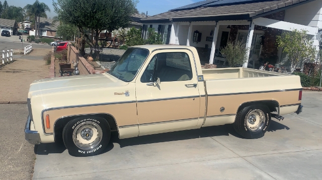 1978 Chevrolet Silverado, factory big block 454/400 trans, 58,500 original miles, shortbed, power windows and locks, AC, original paint matched, professionally lowered, original documents to prove originality such as Hallowell Chevrolet build sheet, sales order, and owners manual. Detailed engine with GM hoses and AC Delco