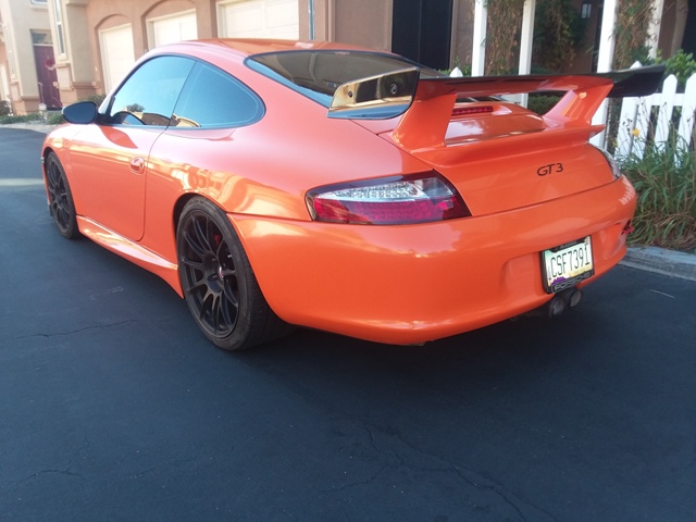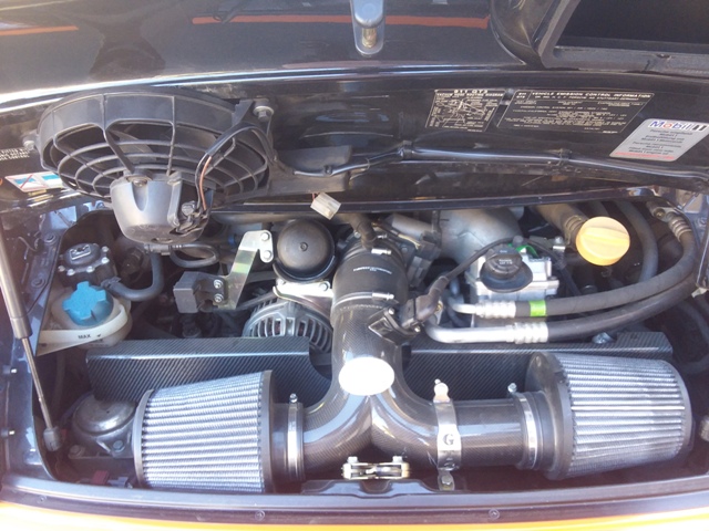 Kevlar 997 front body complete and rear half body and tail. GIAC remapped ECU, 3.6l with the 6 speed manual trans. Fabspeed intake with throttle body-plenum mod, new flywheel with sport clutch and race disc. Porsche factory half cage, GT3 race seats & Bilstien fully adjustable coilovers.