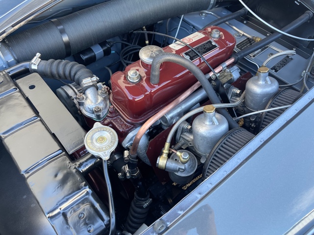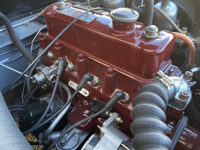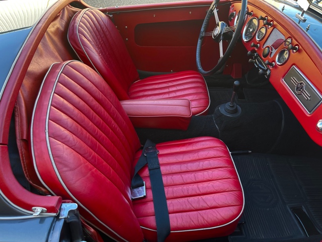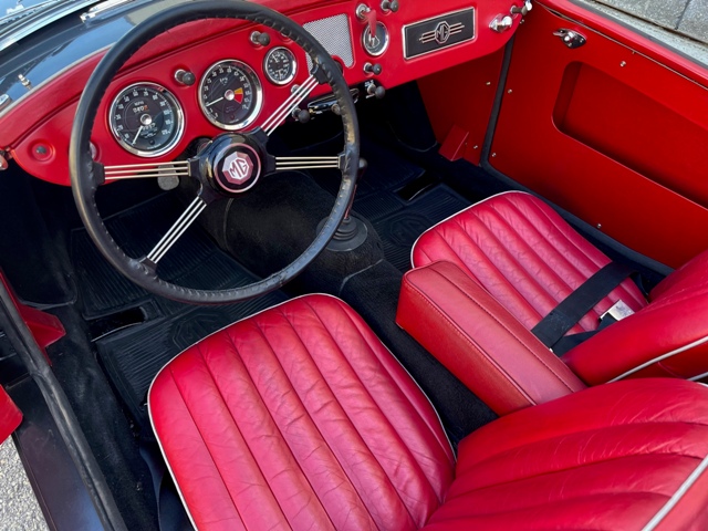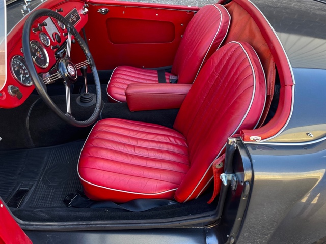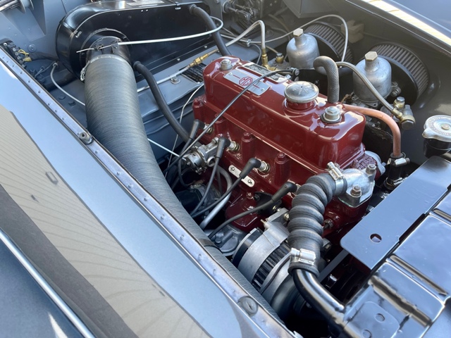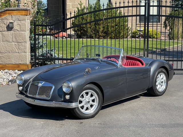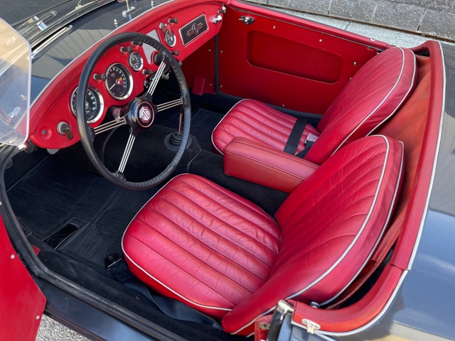 FRESH RESTORATION ON AN ICONIC MGA ROADSTER. COMPLETE BODY OFF RESTORED AND BEAUTIFULLY FINISHED IN CLASSIC DEEP SEA SILVER METALLIC EXTERIOR PAINT COMPLIMENTED WITH RED LEATHER BUCKET SEATS INTERIOR. AWARDED FOR ITS BRILLIANT DESIGN THE 57 MGA ROADSTERS ARE SKY ROCKETING IN VALUE. THIS EXAMPLE HAS A REBUILT DRIVETRAIN, ALL NEW TRIM, CHROME AND WHEELS. SPECTACULAR ENGINE BAY DETAIL ON ITS ORIGINAL 1489CC 4 CYLINDER ENGINE AND 4 SPEED MANUAL GEAR BOX. AFTERMARKET RESTORED WHEELS, LEATHER INTERIOR. 79800 ACTUAL MILES AND UNDER 700 MILES SINCE ITS RESTORATION.