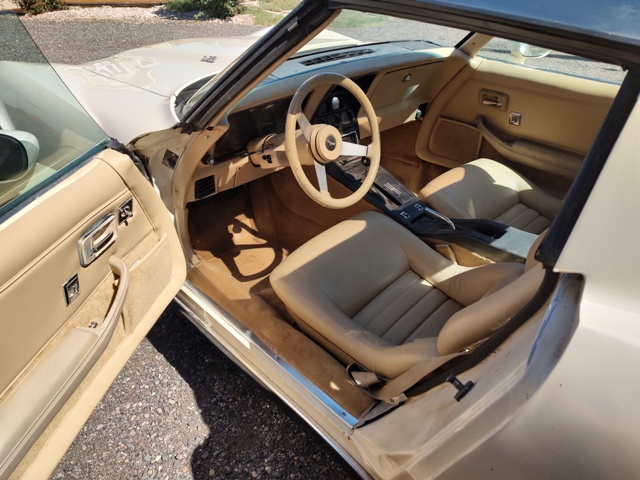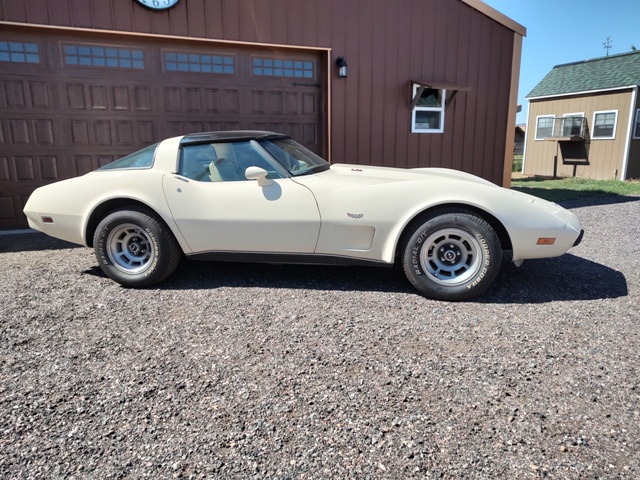 1979 Corvette- rare almond color with tan interior- even more rare L-82 motor with 4 speed transmission. (most had L-48 low horsepower and automatic ) low miles and longtime ownership ( wife's car ). Mirrored T- Tops and rally wheels