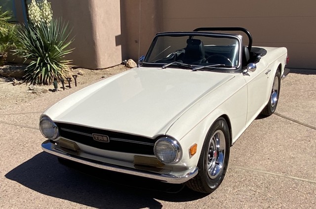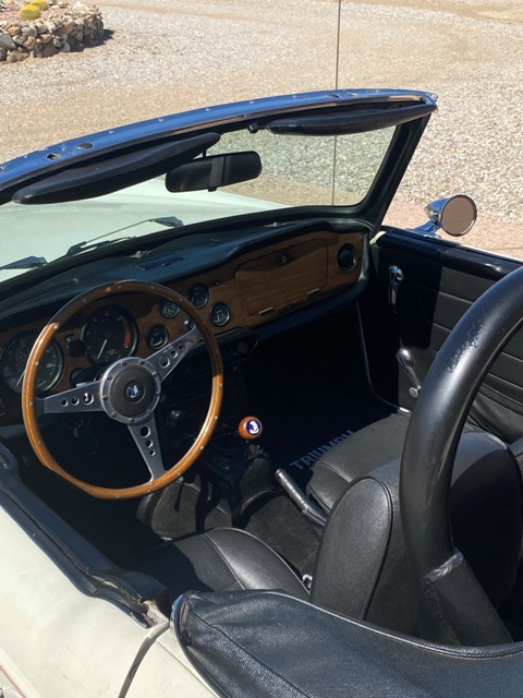 1970 Triumph TR 6 - It was purchased in Feb 1995 at the Keith Mcormick Palm Springs Car Auction. 28 years and less than 30K miles later it is time to pass it to a new owner. Since 1995 it has had a rebuilt engine (1999) transmission and differential placed Lots of suspension replacement and upgrades. Interior replaced. It has a triple Weber carburetor conversion, headers and dual exhausts. Loads of fun and lots of smiles