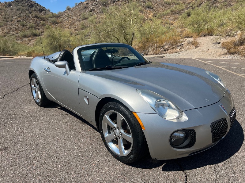 The Pontiac Solstice is affectionately known as the “Baby Corvette.” This example is the GXP model which will hang with Corvettes on a track due to their low and wide stance and a 260 horsepower direct injected, turbocharged and intercooled 2.0L Ecotec 4 cylinder engine. This car will put a smile on your face as soon as you punch it, maybe even make you giggle a little. Equipment includes: -4 new tires on factory 18” alloy wheels -Leather interior with GXP logos and red stitching -Limited slip differential -Power windows, locks and mirrors -5 speed automatic transmission -Traction control -Factory AM/FM/CD stereo