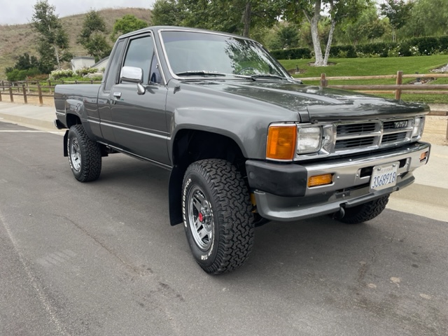 This Truck is a 2 owner with the last owner having it since Jan. 2005, according to Carfax, lifetime rust free Southern California (purchased new in San Diego), Truck. No accidents, all original body panels, (see pics of the VIN stickers on front fenders and hood), 22RE 2.4 L, fuel injected engine, 5 speed manual transmission, with 149783 actual miles. Equipped with factory air conditioning, power steering, sliding rear window, factory chrome bumpers, almost new raised white letter BFGoodrich All-Terrain T/A tires, chrome factory wheels, and dent free pickup bed with sprayed in Rhino Lining bed protector. The undercarriage is as nice as the top side. The interior of this truck is extremely clean and never been smoked in. The truck runs and drives fantastic and holds the freeway nice and straight.