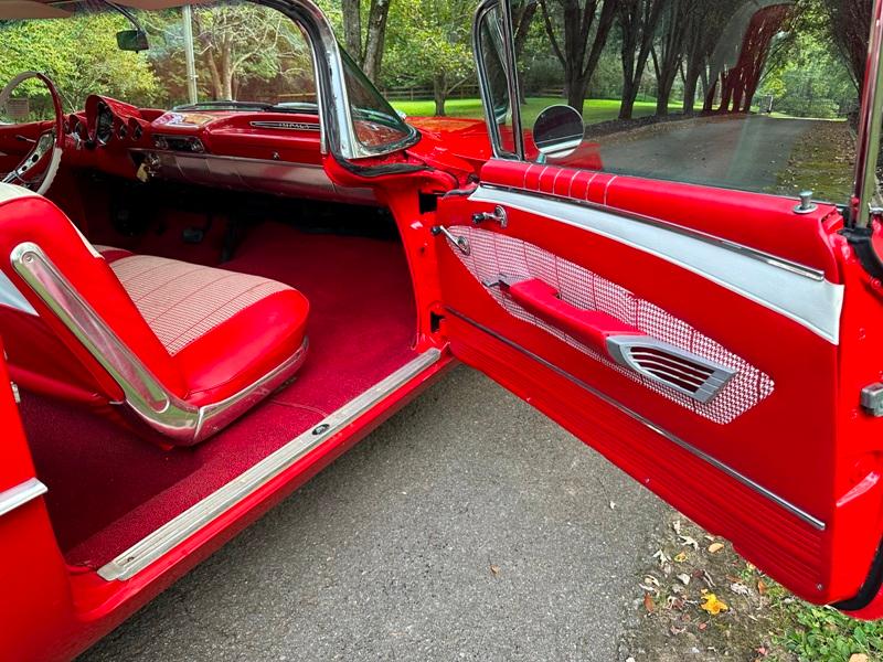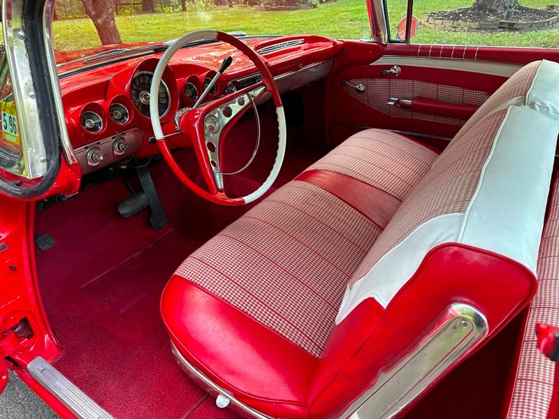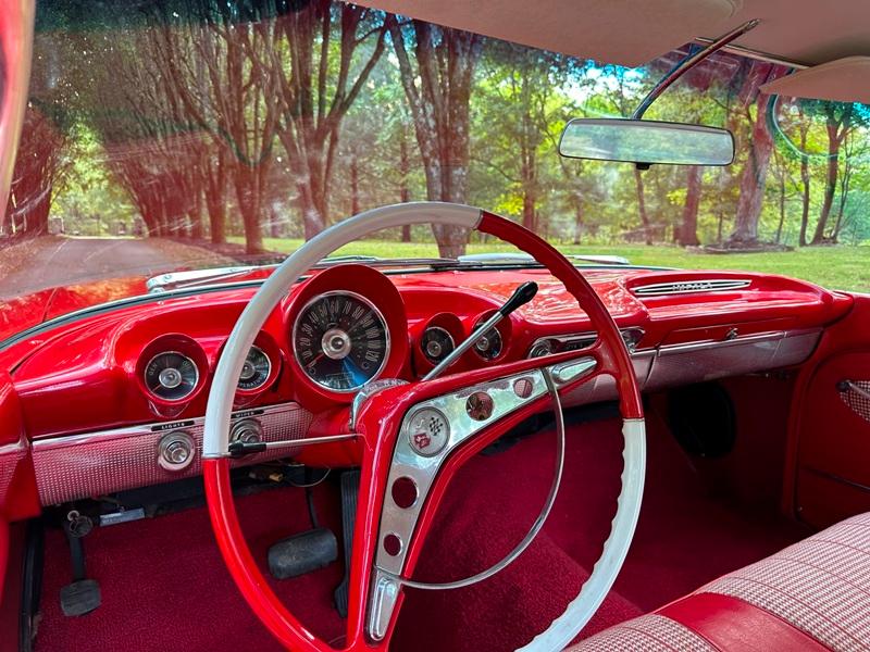 V8, 2 speed Power Glide automatic transmission, power brakes, power steering, wheel skirts, brand new fuel system car to tank. Super nice, rust free floors and trunk. This vehicle was stored in a museum since the early 1980's.
