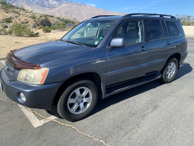2002 Toyota Highlander SUV - 3.0 liter V6. 220hp. 4 speed auto trans. All wheel drive. Limited, package. Full power features. Power moonroof. Leather seating, power of drivers side. Heated seats. Running boards. Roof rack. Near new tires. One Owner, with only 119,000 miles. Clean CarFax, with a excellent service history. Recent maintenance service, with battery replacement done 10/4/2023, at I 10 Toyota in Indio, Ca. Owners manuals, extra keys. These are well built go anywhere SUVs.