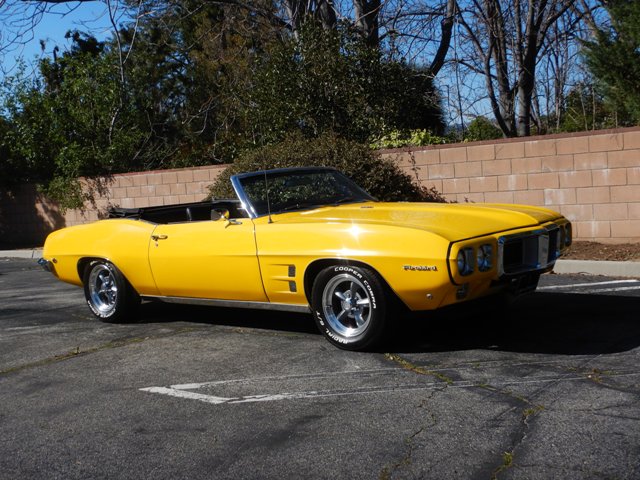 1969 Pontiac Firebird Convertible. A very nice example, finished show quality fly yellow. New Soft top, all chrome, stainless steel excellent, interior is new, upgraded Radio w Bluetooth, AC, power disc brakes, all suspension rebuilt, 350 w Edelbrock intake, carb , ignition, upgraded cooling system. A great driving car.