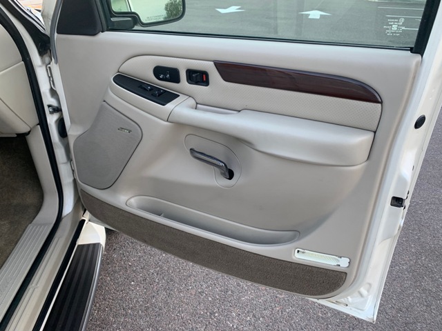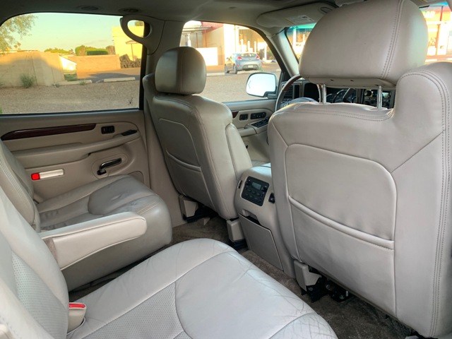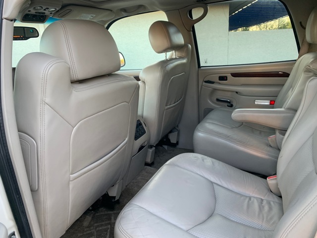 This 2003 Cadillac Escalade is powered by a 6.0 liter v8 engine. Backed by a fresh rebuilt auto transmission . Features include. Premium leather interior. Power bucket seats . Wood grain interior accents . Bose premium sound. 3rd row seating. Convienience package. Comfort package. Fresh rebuilt transmission with less then 100 miles on it . And rides on a set of 20 inch chrome wheels and tires .