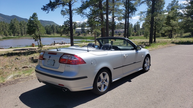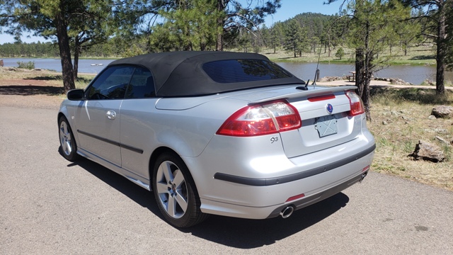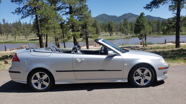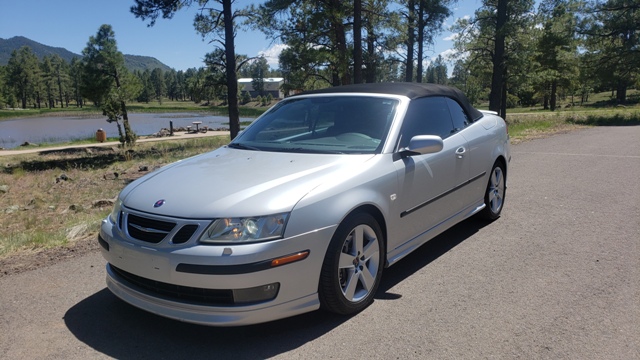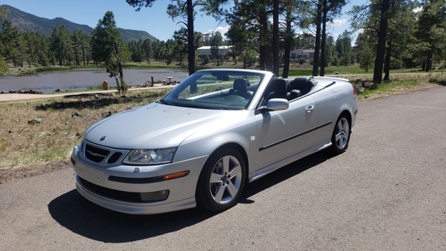 2.8 Liter Turbocharged V6, 252 HP and 262 ft. lb of Torque, Sentronic 6 Speed Automatic Transmission with Steering Mounted Shift Buttons, Aero Sport Chassis, ReAxis Passive Rear Wheel Steering, Books and Manuals, 2 Keys, Spare Tire and Tool Kit, Power and Heated Seats, Dual Zone Climate Control, AM/FM/XM Stereo with Touchscreen Navigation and Voice Control, Power Windows, Locks, Mirrors and Convertible Top, Saab Parking Assistance and Steering Wheel Mounted Audio Controls, Michelin Pilot Sport AS4 All Season Tires, Cold Weather and Touring Packages, All Fluids and Filters Recently Replaced, New Brembo Brake Pads and High Carbon Steel Rotors, NV/AZ Corrosion and Accident Free Car, Clean Carfax.