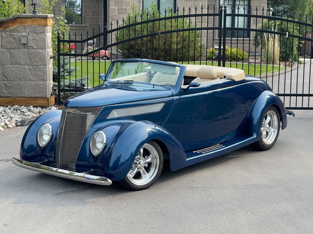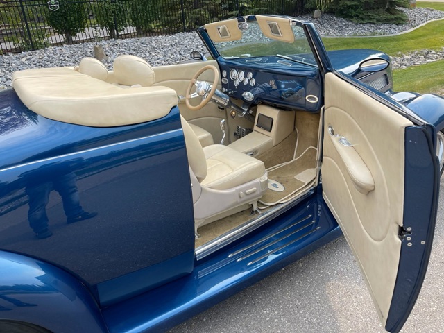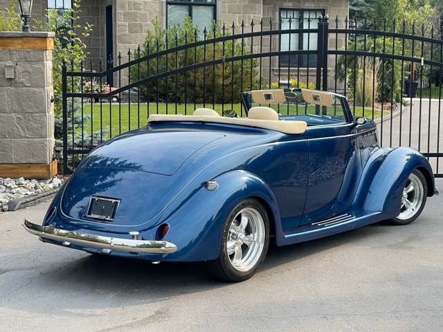 1937 FORD CABRIOLET PRO TOURING CUSTOM 4 Year No Expense Spared Restoration Build Frame Off Restoration To Show Quality Standards chopped 3" with Rumble seat Downs 1937 perimeter chassis with full boxed rails Finished In Custom One Of a kind Maui Deep Sea Blue Metallic exterior paint Corvette LS1 with water cooled supercharger by Magnuson with modified heads 395HP 415 ft lb 6 speed Transmission Suspension Corvette C4, narrowed 3" per side with coil/over springs posi traction with 3:73 gears Wheels/Tires: American Torque Thrust II F 7X17, R 8X18 with Goodyear Eagle F1 Tires F 215/45/ZR17, R 235/50/ZR 18 Champagne leather, convertible top with custom tonneau Pioneer AM, FM, CD, DVD, with Alpine Amp, 8 speakers and entertainment system in rumble seat Special Features:Vintage Air Conditioning With Heat And Frost Power operated hood with remote Power Operated rumble seats with remote Heated 8 way power seats Power operated rumble seat with remote Headed corvette rear window Power windows with remote Windshield wipers and washers Power door locks with remote Mirror signal lights Daylight driving lights Custom rumble seat steps Custom intake/serpentine system