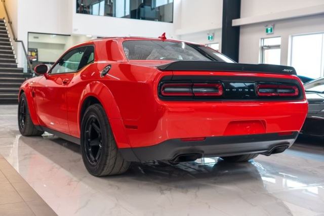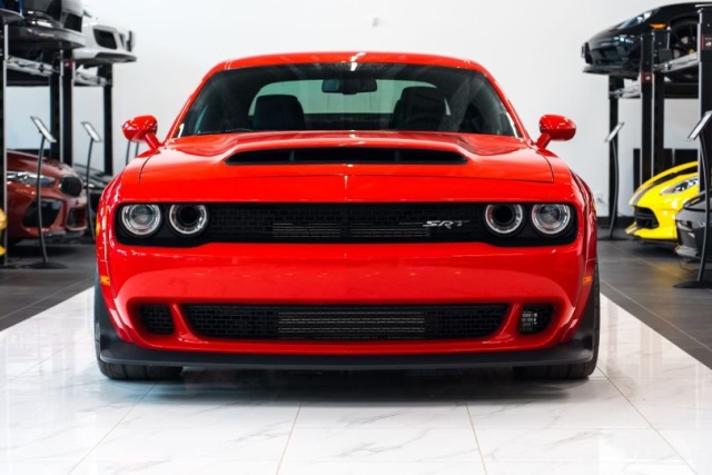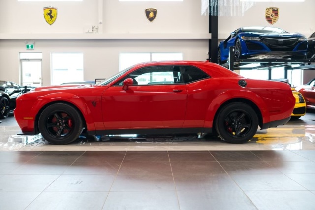 2018 Dodge Demon Demon No 0946 1 year only 1 of 3300 produced and low production number 946 With a supercharged 6.2-liter V8 engine 4920 miles 840 horsepower and 770 lb-ft of torque, making it the most powerful production muscle car ever made. And with a 0-60 mph time of just 2.3 seconds, you'll be able to leave the competition in the dust. Engine: 6.2L V8 Supercharged Output: 808HP, 840HP on 100 Octane. 770 lb-ft tq Transmission: TorqueFlite 8 speed automatic Driveline: RWD Tires: 315/40R18 Nitto Tires Dodge Demon Exterior Options - Demon air grabber hood - Widebody fender flares - 18 inch wheels - Illuminated air catching headlights - Daytime running lamps - Power mirrors with maual fold-away Dodge Demon Interior Features - Demon serialized dash plaque - Wildwheel alcantara steering wheel - Power 6 way driver seat - Power 4 way lumbar adjust - Integrated voice command with bluetooth - UConnect - Navigation - 8.4 inch display - Apple Car play - Android Auto - SiriusXM ready Other Equipment - Leather rear seat - 3 point rear center seat belt - Child seat upper tether anchorages - Luxury front and rear floor mats - 60/40 rear split folding seats - Rear armrest with cup holder - Heated front seats - Ventilated front seats - Heated steering wheel - Power tilt and telescopic steering wheel - Bright pedals - 18 speakers premium audio system with subwoofer - Harmon Kardon GreenEdge amp