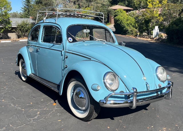 Excellent original example with lots of paperwork from 1957 (Original VW service Manual and window Sticker). Sold by the Atlas Motor Company and has 2 owners since new. Original stock interior with one repaint in Horizon Blue. Exterior luggage rack with like new wide white wall tires and Hubcaps. Original drivetrain that was recently Serviced. Very dependable!