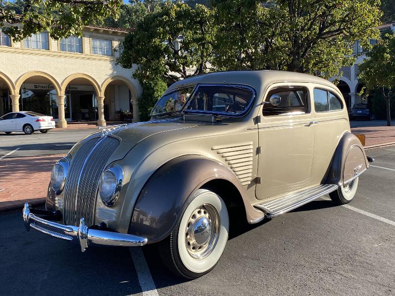 1934 DeSOTO AIRFLOW BROUGHAM COUPE - Of the 13,940 DeSoto Airflows sold in 1934 only 522 were 2 door Broughams. This fine example has had a ground up restoration. The exterior was painted two tone meduim brown, all chrome redone and undercarriage was finished appropriately. Interior has been completely redone with correct tan cloth and shows excellent workmanship. The engine was completely rebuilt, starts easily and runs smoothly as it should. A very collectable vehicle and is one of four Airflow Broughams know to exist.