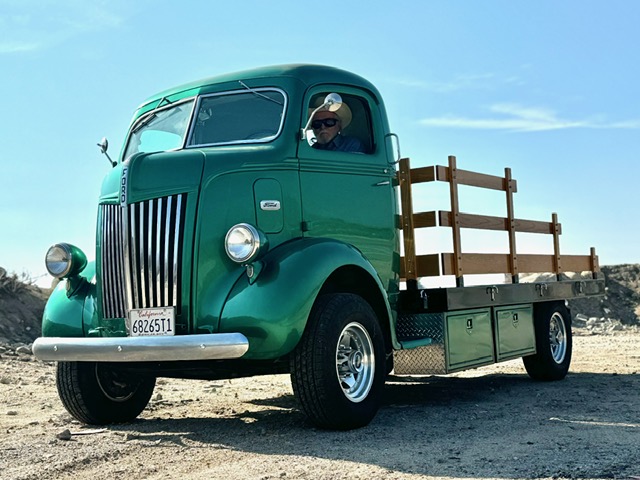 1947 FORD CAB OVER ENGINE FLATBED...Has 1984 Ford E350 chassis, 460 C6 transmission and 460 V8 engine, Body by Coute Arrowhead Auto Air, No Bondo - Heat & Hammer, Paint by Ninos in San Bernadino, Upholstery by Ron Magnus, Bed by Coute's Chrom by MJ polishing. Same owner last 12 years, took 3 years to build and has been driven less than 250 miles since build. Includes custom car cover.