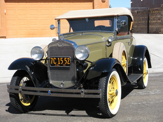1931 FORD MODEL A DELUXE ROADSTER - Factory numbers matching all steel vehicle, One family owned for over 30 years, Converted to a complete hydraulic brake system, Tan top with matching side curtains, Rumble seat, Glass wind wings, Side mirrors, Turn signals, Seat belts, Luggage rack, Radiator stone guard, Cowl lights, Car cover, Parade and car show favorite.