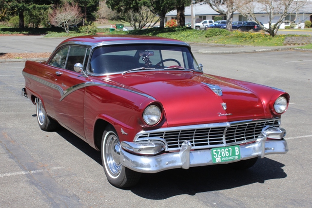 • 956 Ford Victoria 2-Door Hardtop • Very rare! Less than 10% w/ Victoria Option • Factory Thunderbird Badging on Fender • 292 Y-Block V8 Engine--Automatic transmission • Ruby Red Paint • Newly Upholstered Seats • Restored factory radio • Phenomenal restoration • Truly a Dream to Drive! Not just beautiful, but exceptionally rare, too – that's what you'll tell everyone at the car shows when they see this 1956 Ford Victoria. After all, less than 10% of the ‘56 Fairlane production was this top-of-the-line Victoria. The Thunderbird badging on the front fender is no accident. Pop the hood and you'll find the proper 292 cubic-inch Ford Y-block V8 motor, which is one of the largest motors Ford had to offer at the time. That was an optional powerplant borrowed from Ford's ultimate personal cruiser, the Thunderbird. Finished in the fashionable ruby red colorway this is truly a one-of-a-kind car. From the soft seats that you just want to sink into to the factory restored radio, this is truly a phenomenally done restoration. Beautifully restored and was part of the Collin McGinness Collection.