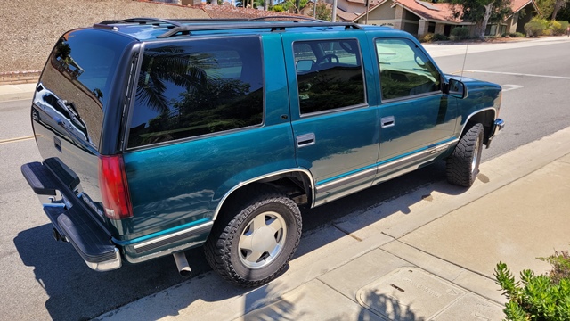 Beautiful all original condition 1999 Chevrolet Tahoe LT 4x4 Four door with popular Teal metallic factory finish. This Tahoe is in all original condition inside and out with near perfect paint and original camel leather interior no rips or tears. This Tahoe is equipped with every available factory option and Towing package. 350 Vortec V8 multi-port fuel injection, four speed automatic transmission. Heavy duty manual 4x4 transfer case no push button optioned. Vehicle has been well cared for always serviced, recently serviced ,Ice Cold dual air conditioning, everything works and very reliable. Original California car, no rust or accidents.